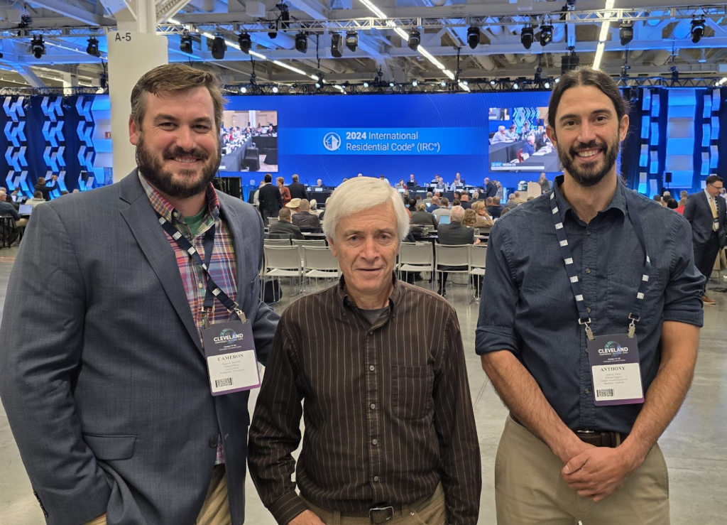Appendix BL – Hemp-Lime (Hempcrete) Construction in the International Residential Code (IRC) saw significant advancement at code development hearings in Cleveland. Myself, Anthony Dente of Verdant Structural Engineers, and hemp-lime builder Cameron McIntosh of PA-based Americhanvre testified before the 11-member IRC Committee on behalf of their code change proposal to include three fire-tested hemp-lime wall assemblies in the 2027 IRC. The proposal received unanimous approval.