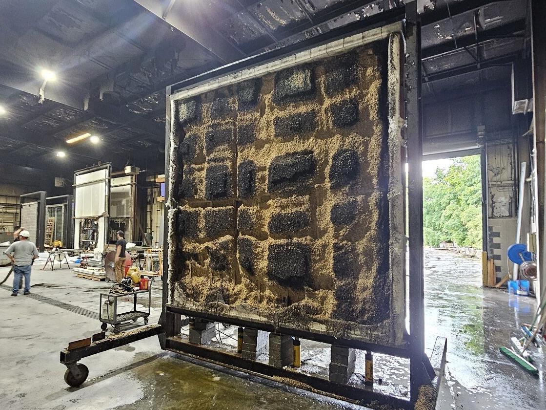 A hemp-lime wall panel survived a 1-hour ASTM E-119 fire test. Photo Courtesy of Cameron McIntosh